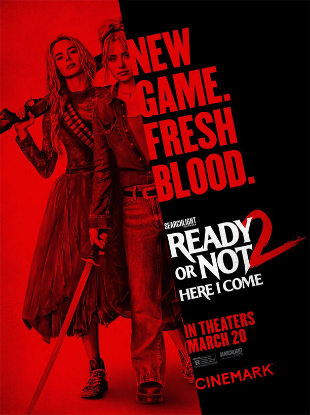 ** READY OR NOT 2 HERE I COME: Searchlight's film moves up to March 27, demonstrating a big confidence in the horror sequel from its April 10 release date in 2026. The new release date for the Radio Silence directed movie is the pre-Easter frame and it's going up against Warner Bros/New Line horror movie THEY WILL KLL YOU. (thanks to Deadline.com)