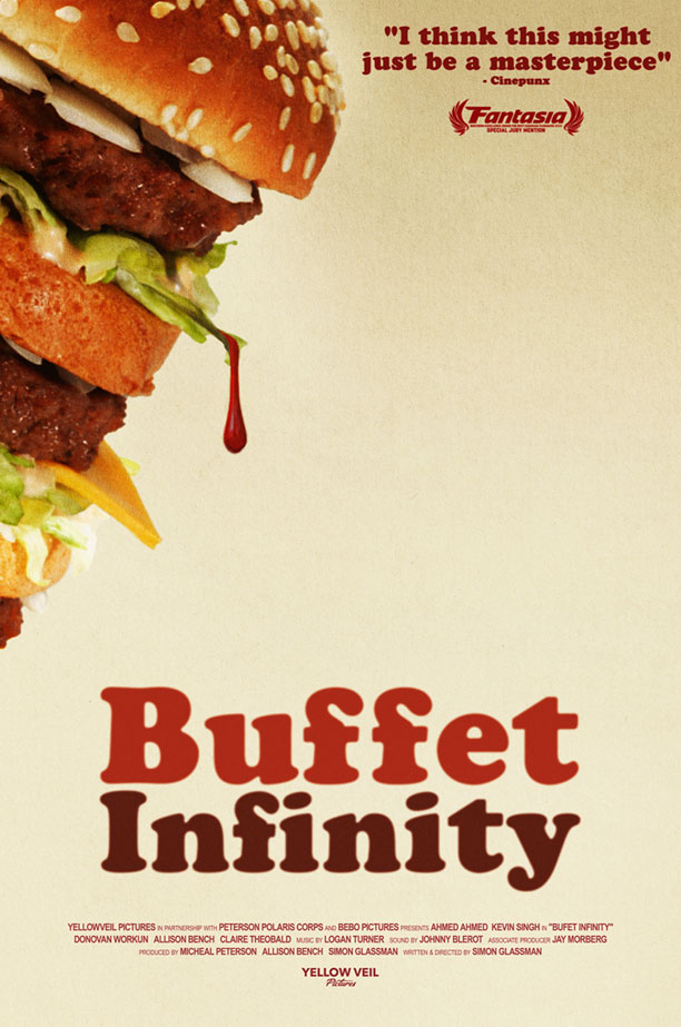 ** BUFFET INFINITY: Echoing the Canadian comedy classic 'Sctv' and picking from hundreds of hours of original, low-budget TV ads to tell the sinister tale of two restaurants battling it out in the fictional town of Westridge County. Ads for insurance, used car rivals, a local religious scholar, and a recording artist converge to tell the story of an expanding sinkhole, a cult, and an ever-growing restaurant that becomes unsettlingly sentient.
